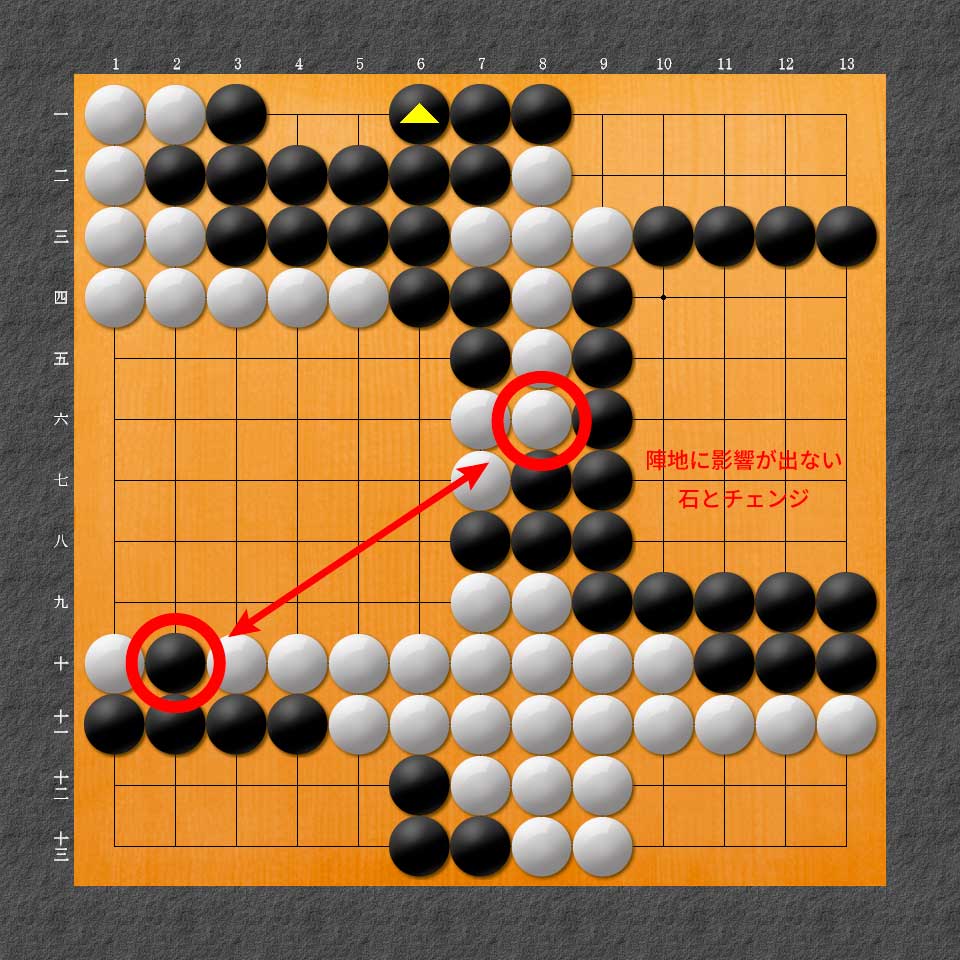 このままだと白黒の境界線が分かりにくいので、陣地に影響が出ない石を交換しながら整えます。